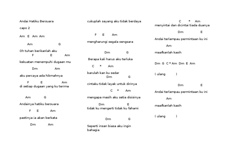 Kord Gitar Lagu Andai Hatiku Bersuara Pdf